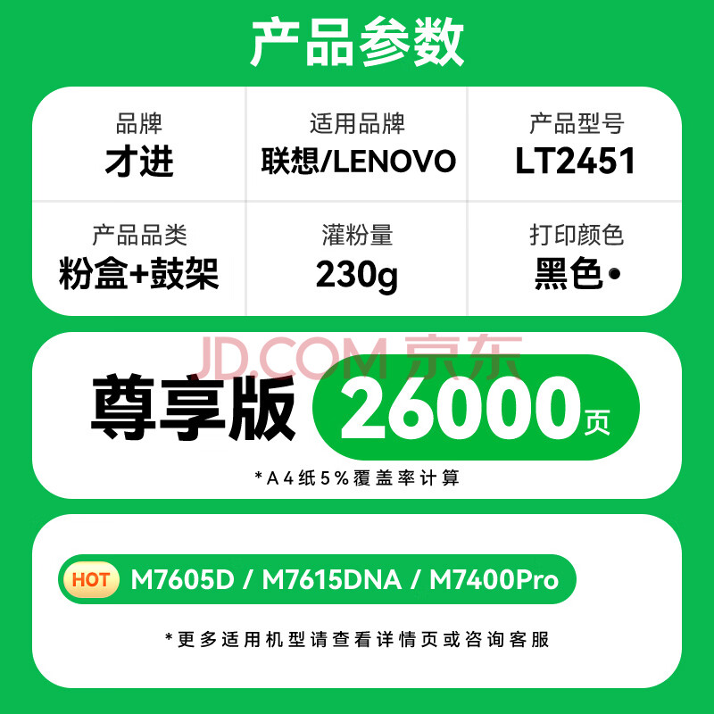 商品相册:才进适用联想m7400pro粉盒m7605d硒鼓m7615dna墨粉盒lj2605d m7655dhf碳粉m7405d m7455dnf打印机墨盒lt2451h第