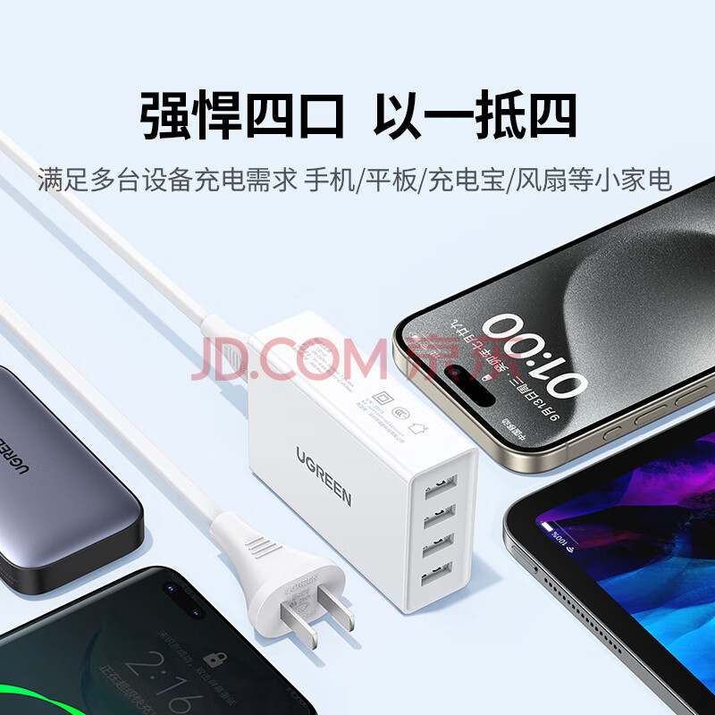 商品相册:绿联多口USB充电器插座6.8A快充头四口充电头插头适用苹果iPhone17/16e15华为小米iPad平板手表 桌面款第