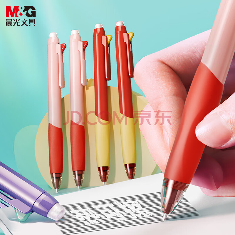 商品相册:晨光(M&G)(M&G)文具 热可擦中性笔 正姿优握按动子弹头0.5mm黑色 小学生用红杆4支装AKPK0404A第