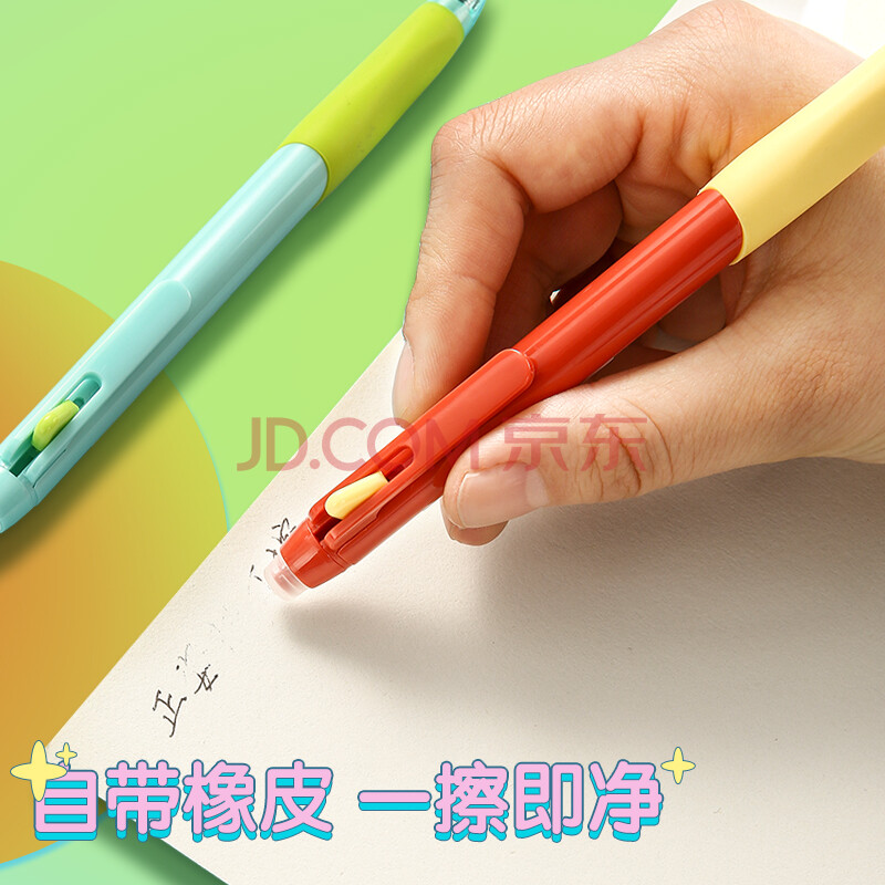 商品相册:晨光(M&G)(M&G)文具 热可擦中性笔 正姿优握按动水笔子弹头0.5mm晶蓝色 小学生用 红杆4支装AKPK0404B2第