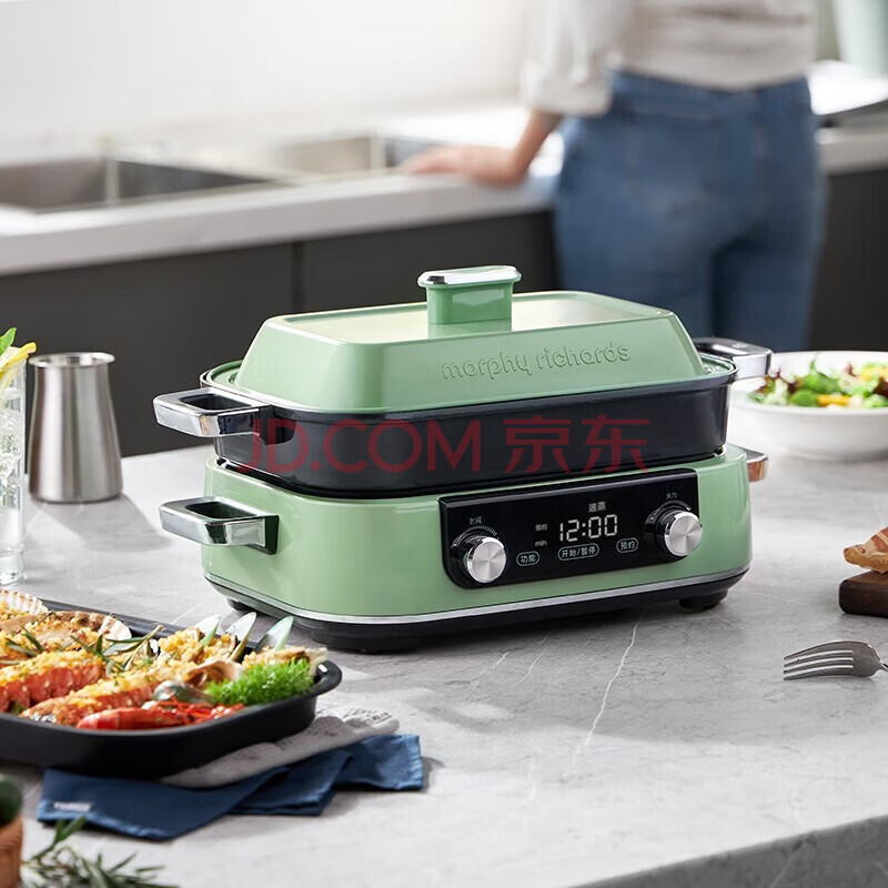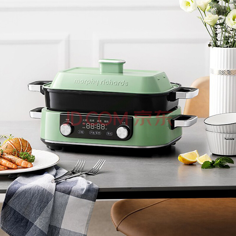 商品相册:摩飞电器(Morphyrichards)多功能锅 家用电火锅电蒸锅 5升可预约 大功率分体式蒸煮一体不沾v煎烤料理锅 标配MR9099颜色随机第