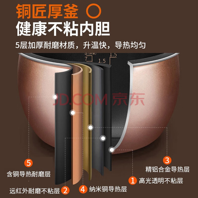 商品相册:九阳(Joyoung) 电饭煲 智能预约 4L大容量 不沾内胆 家用电饭煲铜匠厚釜升F40FZ-F336 深灰色第