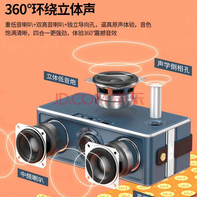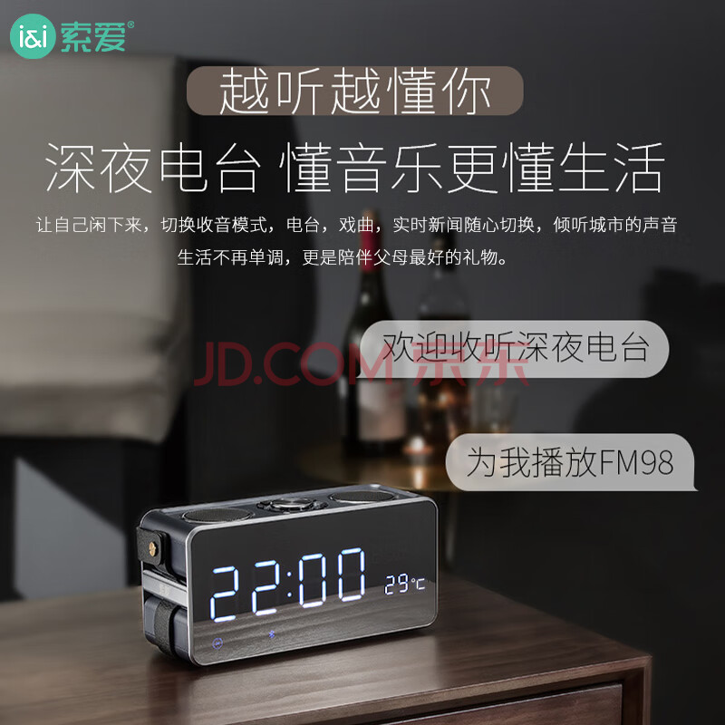 商品相册:索爱(soaiy)S18 蓝牙音箱电脑音响家用手持闹钟户外低音炮收音机插卡收款 广场舞扩音器创意 睿智黑第