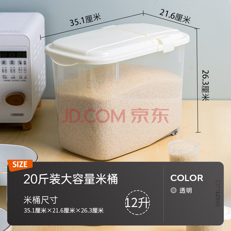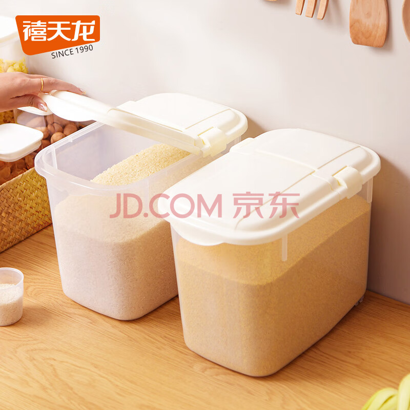 商品相册:禧天龙米桶米缸家用密封储米面粉防潮防虫厨房收纳箱带滑轮20斤米大容量第
