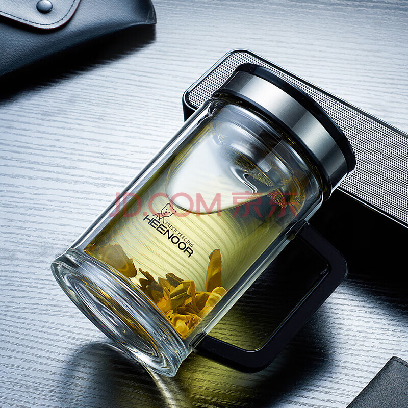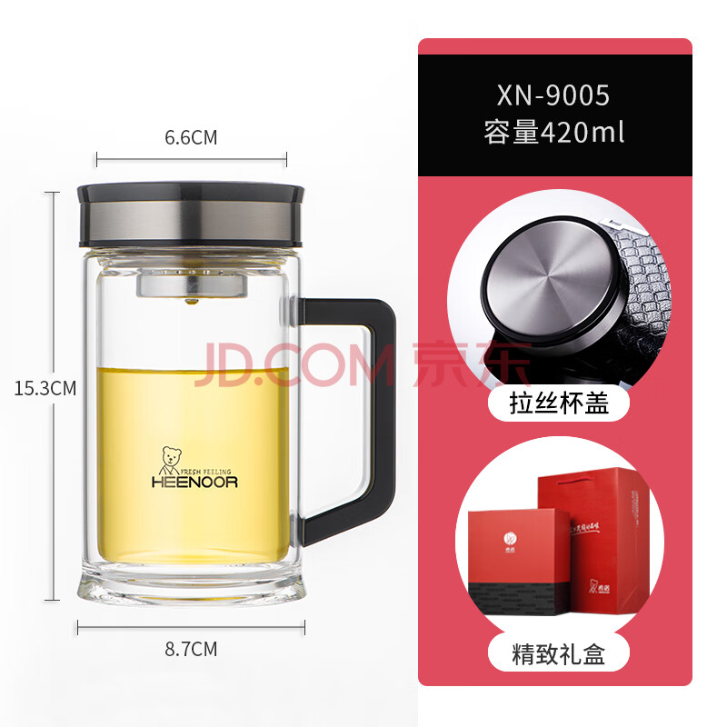 商品相册:希诺双层玻璃杯带把手高档泡茶杯子男家用办公透明水杯XN-9005 420mL第