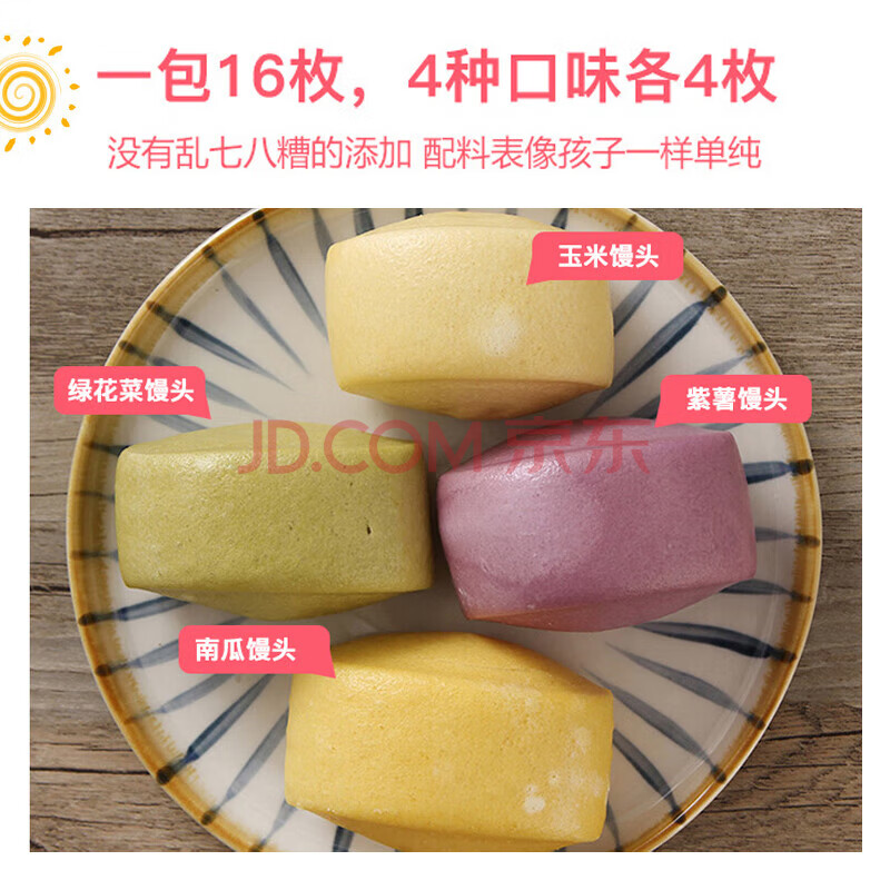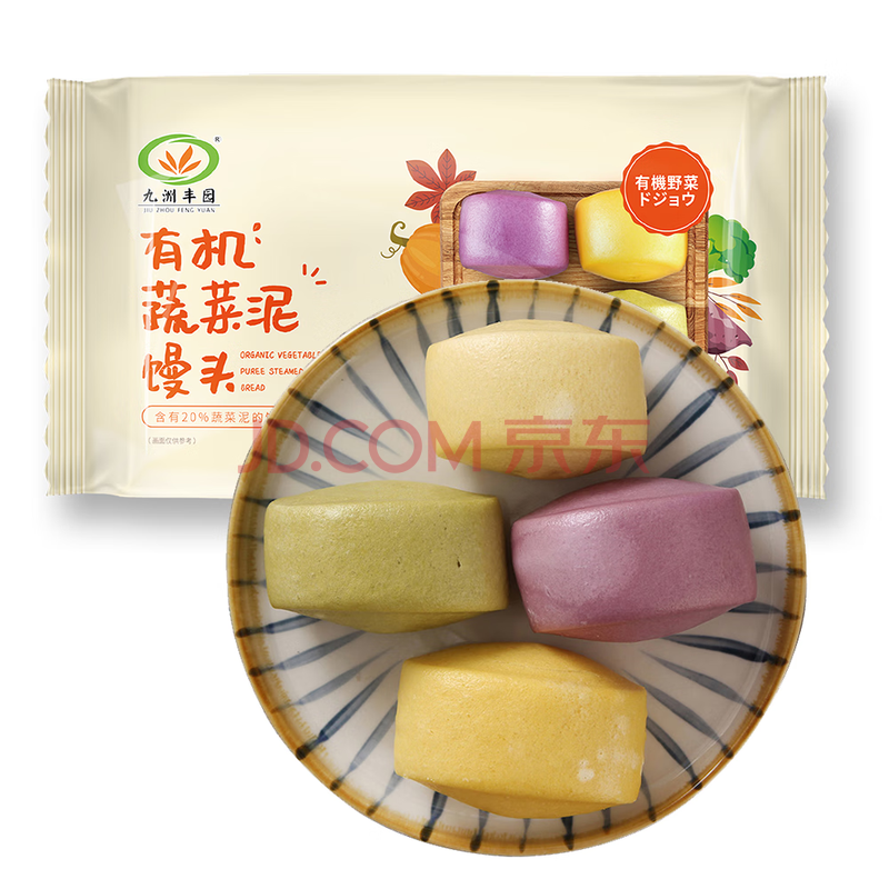 商品相册:九洲丰园有机蔬菜泥馒头640g /16个儿童早餐食品半成品早饭面点山东馒头第
