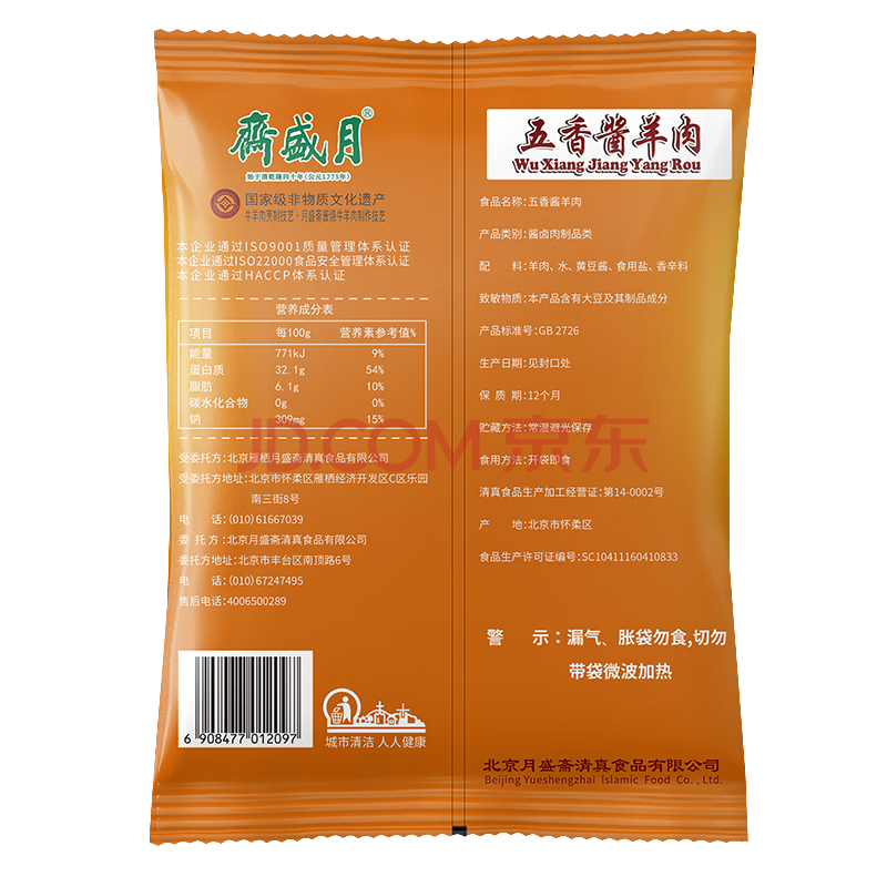 商品相册:月盛斋 清真羊肉 中华老字号 酱羊肉熟食 五香酱羊肉200g开袋即食下酒菜第