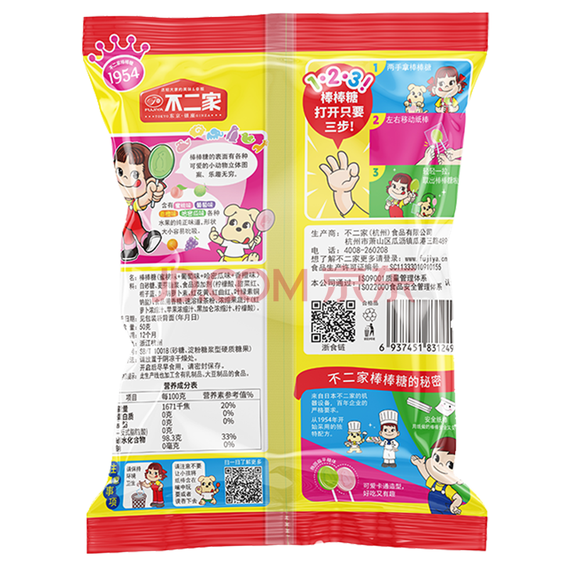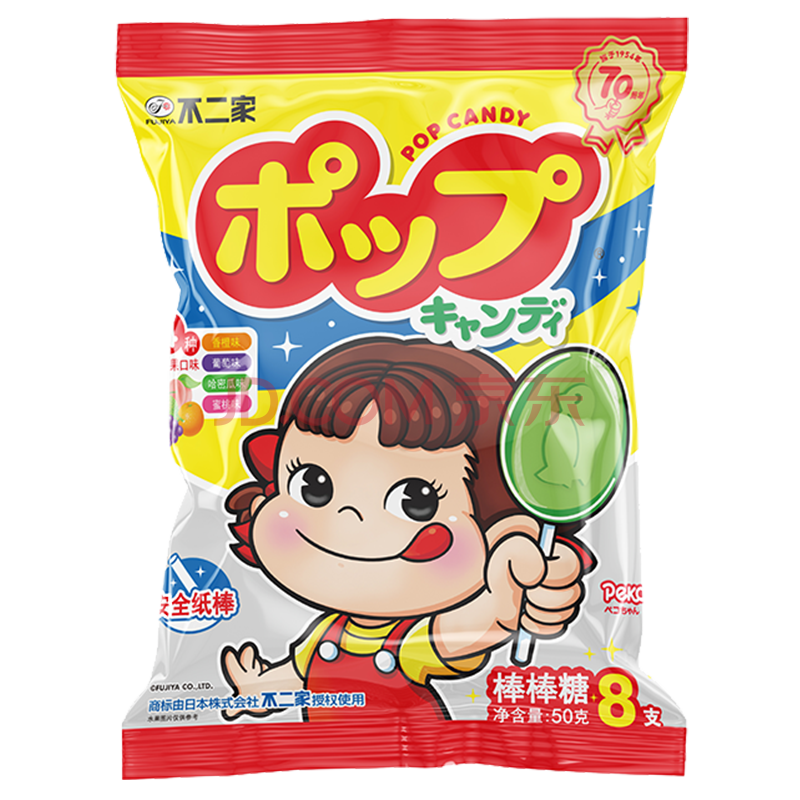商品相册:不二家 混合水果棒棒糖 50g(8支) 儿童糖果 休闲零食 水果糖 零食 礼物第