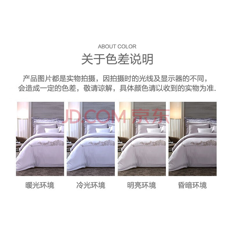 商品相册:富安娜HOTEL系列 四件套60S长绒棉纯棉贡缎酒店床品套件安妮娜 1米8床灰第