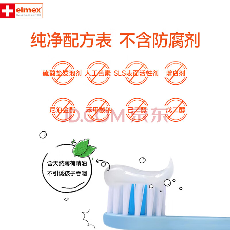 商品相册:ELMEX艾美适宝宝儿童牙膏0-3-6岁婴儿奥拉氟防蛀含氟固齿牙龈护理50ml第