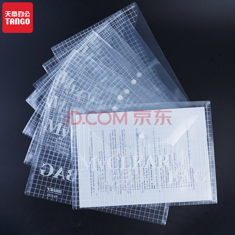 商品相册:天章 (TANGO) 新绿天章 透明文件袋A4按扣袋办公资料袋塑料收纳袋试卷防水纽扣袋考试用文具袋网格纹20只 0314第