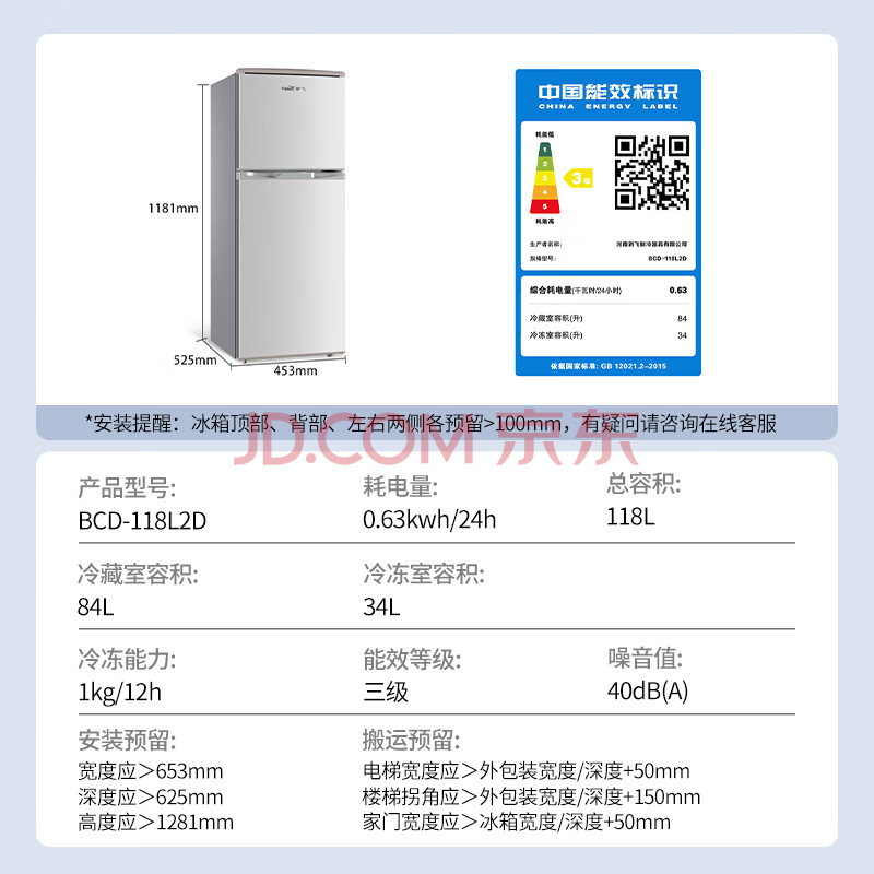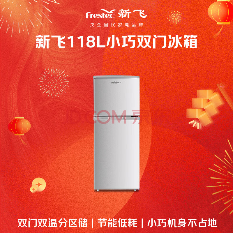 商品相册:新飞 (Frestec)118L两门分区存储迷你环保节能省电小巧机身冰箱 BCD-118L2D第