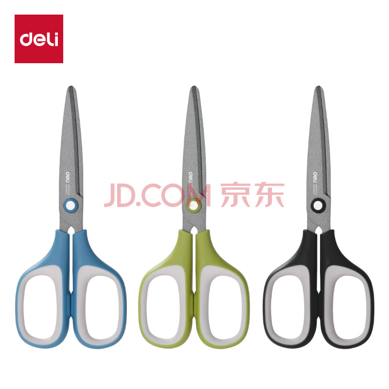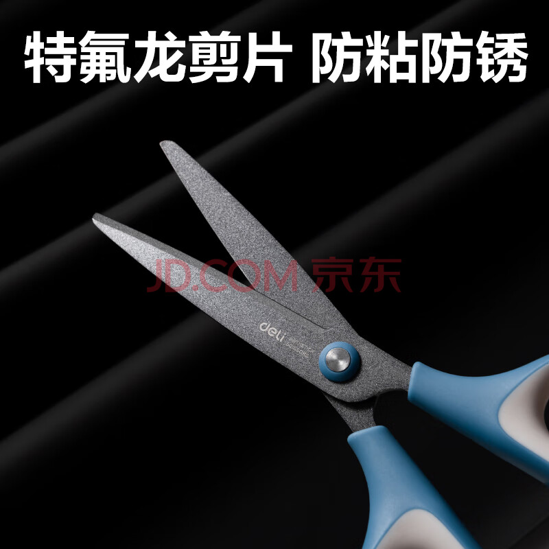 商品相册:得力175mm特氟龙防粘剪刀 软胶手柄 家用生活剪子 手工剪纸开箱刀 办公用品 黑色6055第