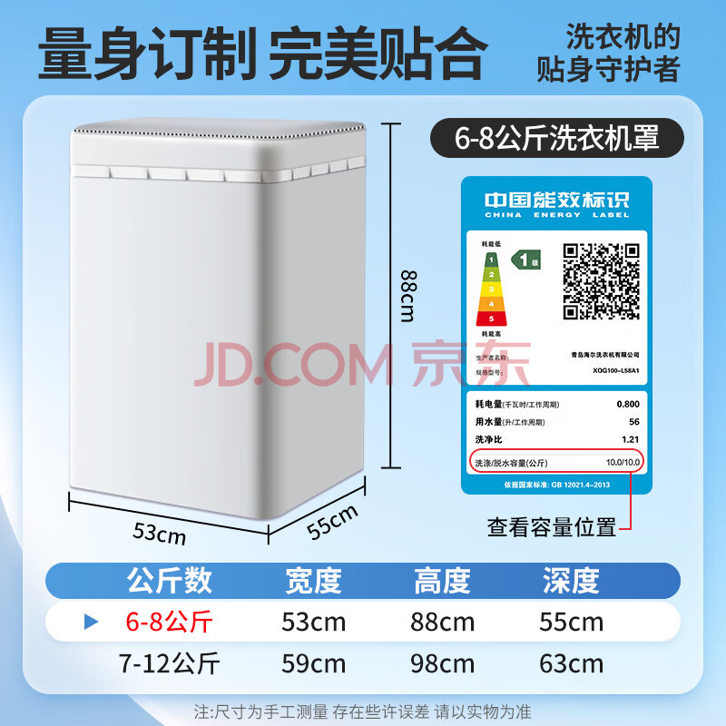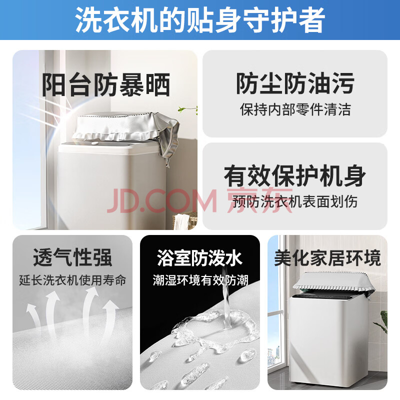商品相册:柯锐迩波轮洗衣机罩子防水防尘阳台防晒罩8公斤海尔小天鹅TCL松下小米上开盖全自动洗衣机通用罩衣盖布垫第