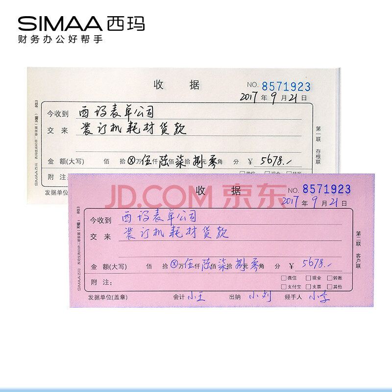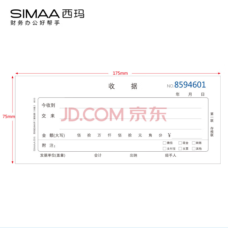 商品相册:西玛(SIMAA)8025 二联单栏收据 20组10本装 60k 175*75mm 优尚精品 无碳复写收货财务收款凭证单据本第