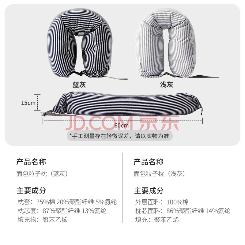 商品相册:名创优品(MINISO)面包粒子枕U型枕学生午睡枕旅行便携办公室护颈枕生日礼物 蓝灰色第