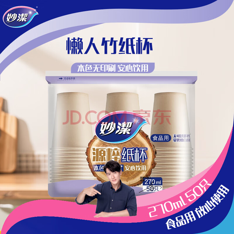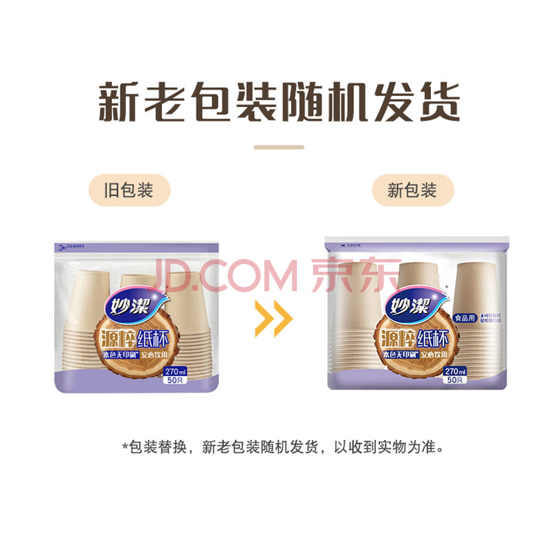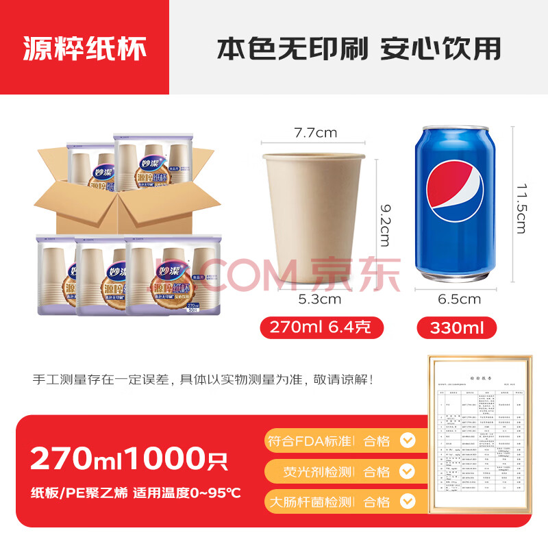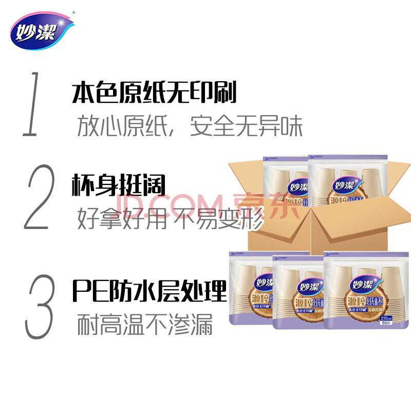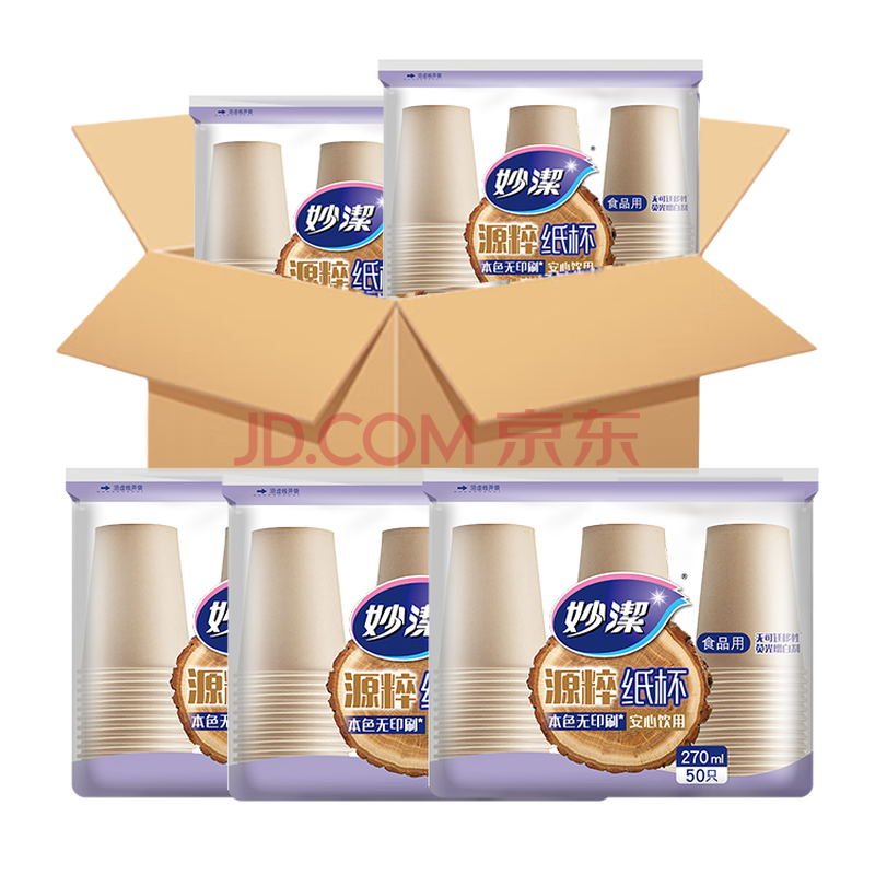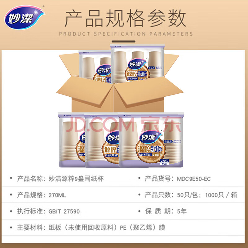 商品相册:妙洁源粹纸杯整箱装270ml*1000只 加厚一次性杯子茶水本色食品级批发第1张/共7