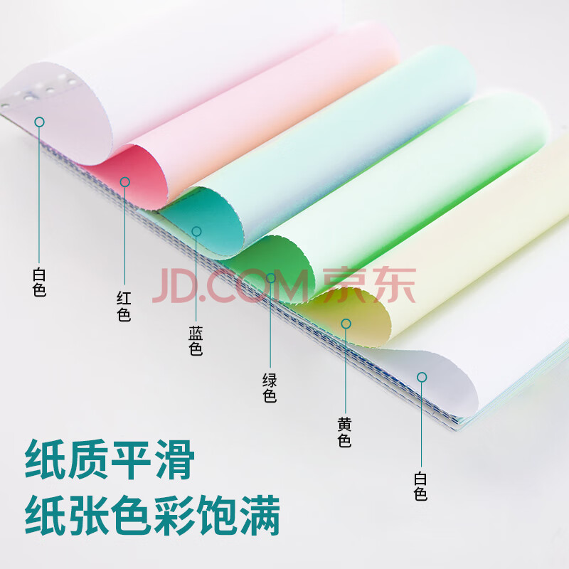 商品相册:得力(deli)【缺页十倍赔】珊瑚海六联二等分可撕边针式电脑打印纸 彩色(白红蓝绿黄白)1000页241-6-1/2CS第