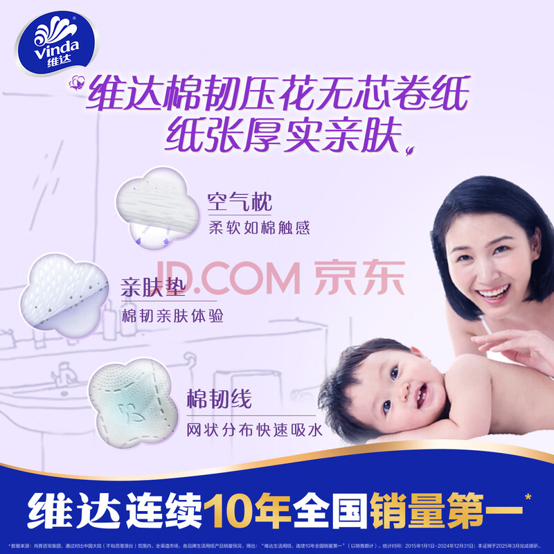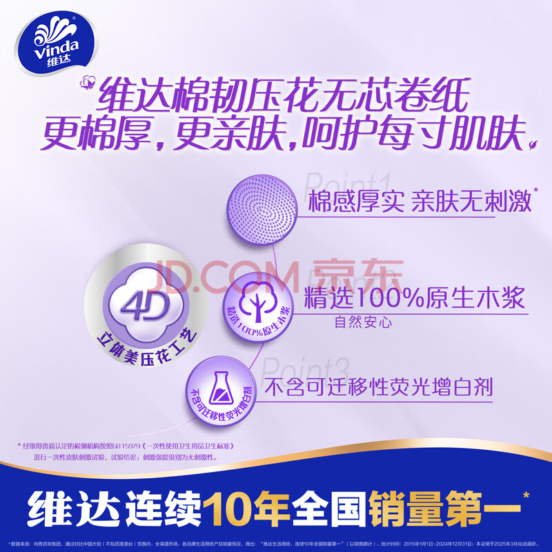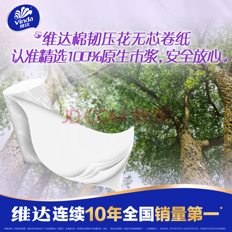 商品相册:维达(Vinda)无芯卷纸 棉韧4层120克*12卷 厚韧 卫生纸厕纸 卷筒纸纸巾第