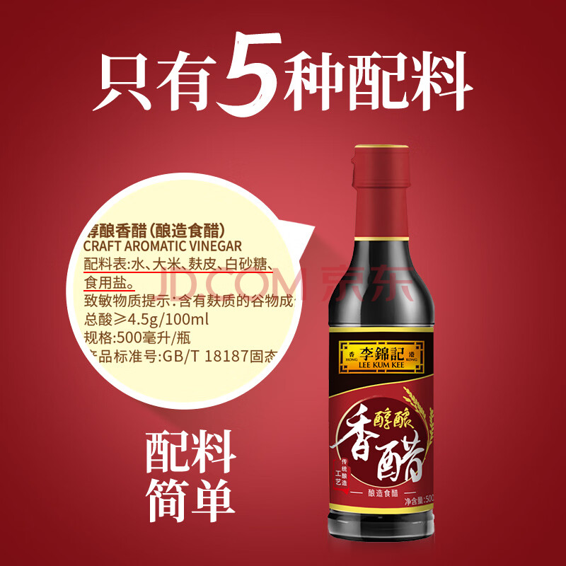 商品相册:李锦记 醇酿香醋500ml【0添加防腐剂】固态发酵 凉拌海鲜饺子点蘸拌调味第