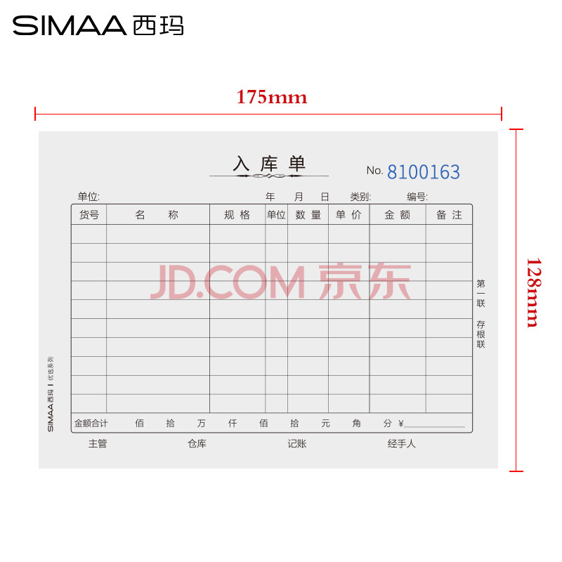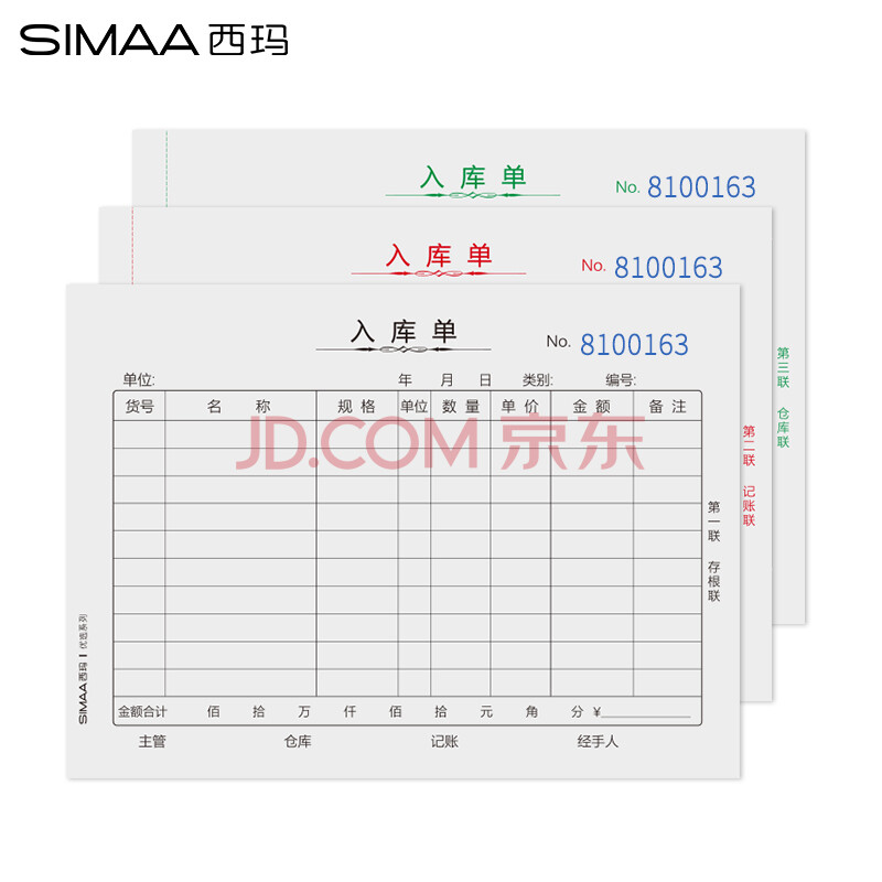 商品相册:西玛【超级爆款】西玛(SIMAA)10本装三联入库单36K 175*128mm20组/本 RK232无碳复写财务单据第