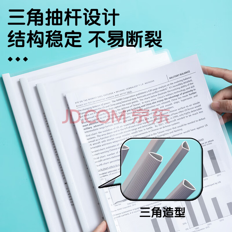 商品相册:晨光(M&G)文具 10只加厚透明抽杆夹5mm三角拉杆夹文件夹 学生简历夹 考试报告资料收纳夹 办公ADM4163第