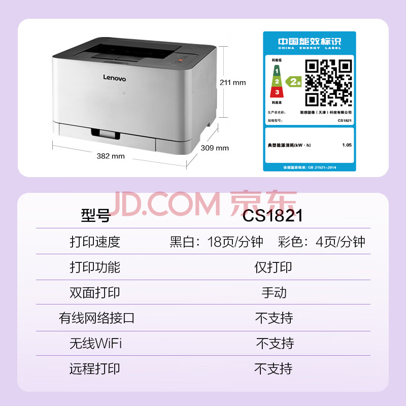 商品相册:联想(Lenovo)至像CS1821 彩色激光打印机 办公家用学习 学生作业打印机第