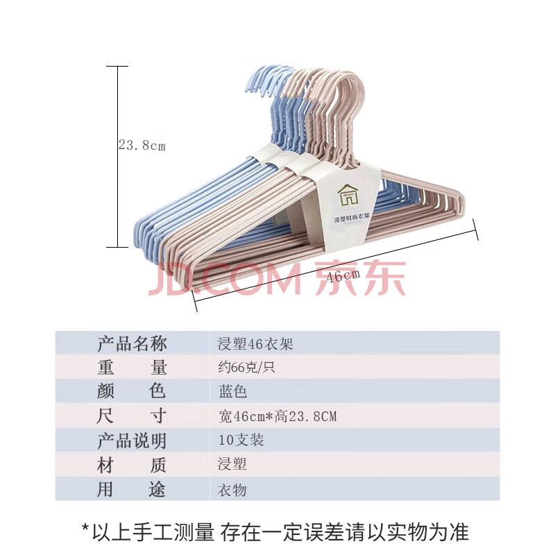 商品相册:秉优 衣架 宽度46cm晾衣架 18寸加粗浸塑衣架10支第