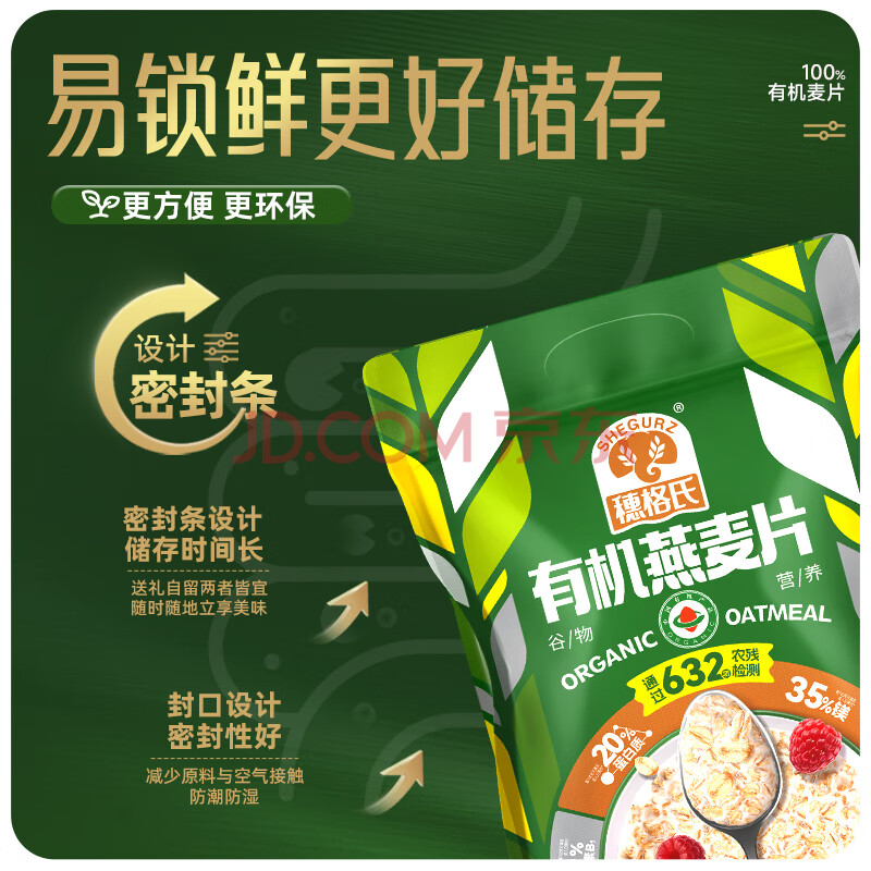 商品相册:穗格氏冲饮谷物营养早餐有机燕麦片700g免煮即食原味无糖精钠冲饮谷物第