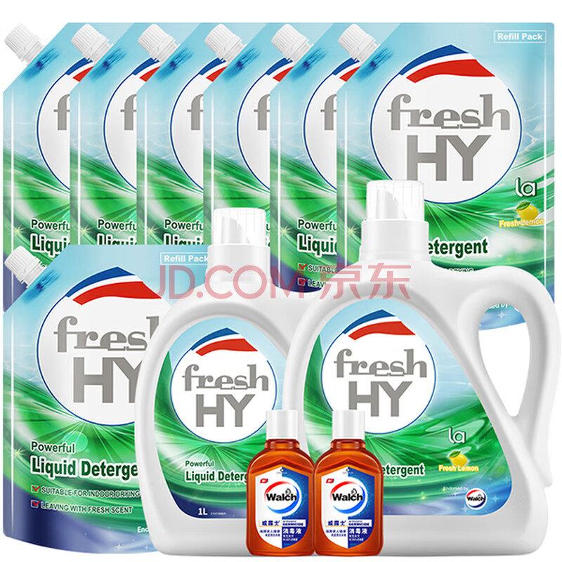 商品相册:威露士清可新洗衣液柠檬香20.24斤(瓶2L+1L+袋1L*7+消毒液60ml*2)除螨第