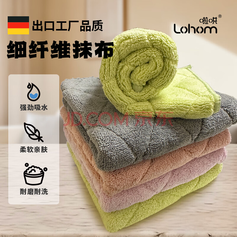 商品相册:啦哄吸水抹布28*28cm4条去油污加厚不掉毛擦家务清洁布厨房洗碗布第