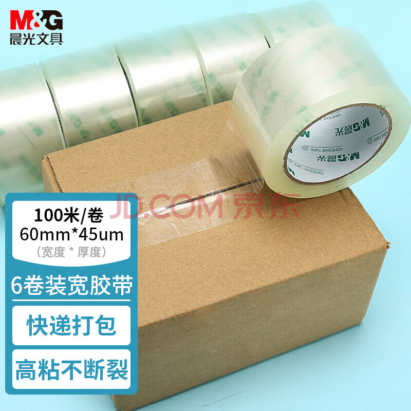 商品相册:晨光文具透明封箱胶带打包胶带大胶布 60mm*100m*45um 6卷/筒 快递工厂仓库打包办公用品 AJDN7608第