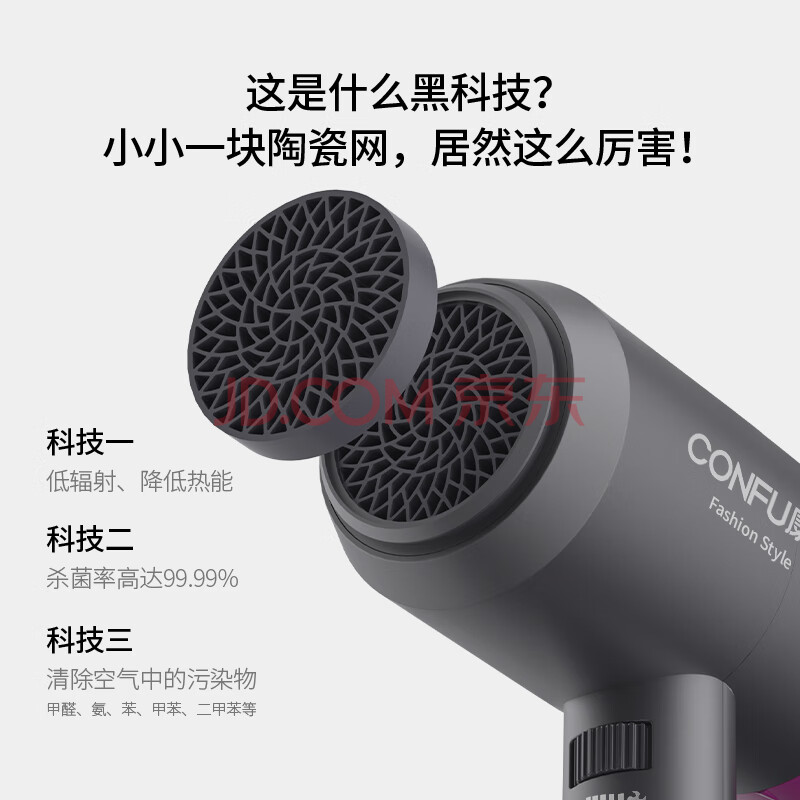 商品相册:康夫(CONFU)低辐射杀菌速干吹风筒 大功率负离子护发电吹风 家用吹风机母婴款 KF-3127生日礼物第