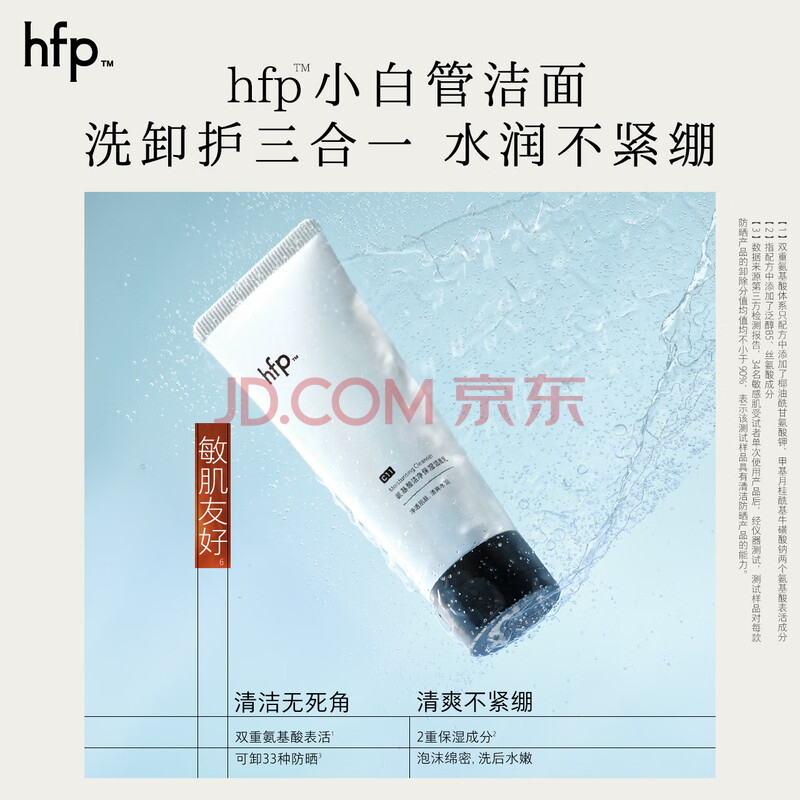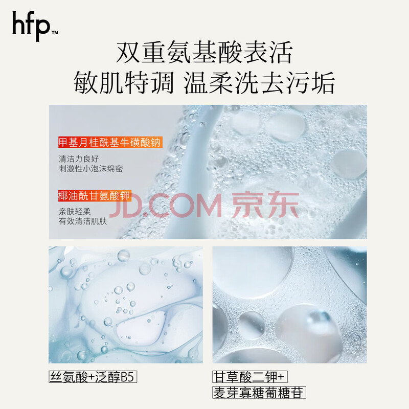 商品相册:hfp氨基酸洗面奶男女士保湿洁面乳100g温和深层清洁补水清爽不紧绷第