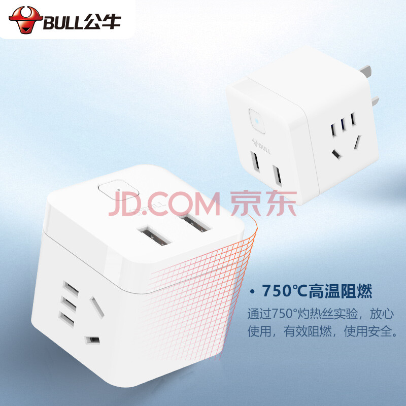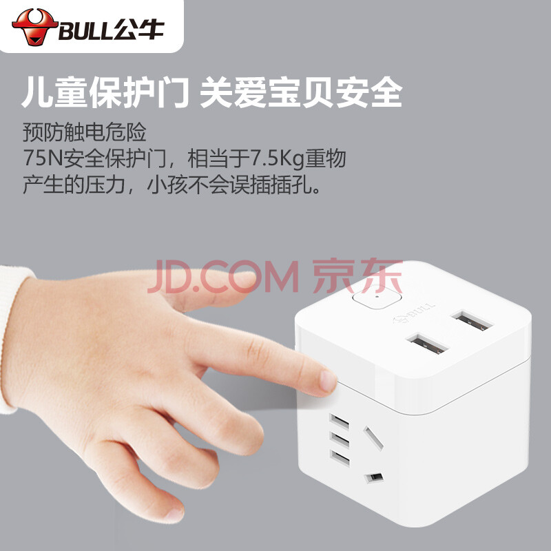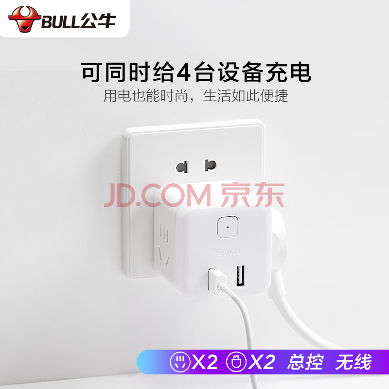 商品相册:公牛(BULL)小魔方USB插座 插线板/插排/排插/接线板 2孔+2USB口 总控开关无线魔方 GNV-U9B122第