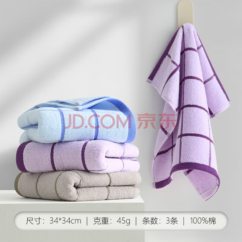 商品相册:新亚 方巾 纯棉苏伦格子小毛巾全棉洗脸大方巾擦手巾3条装 34*34cm第