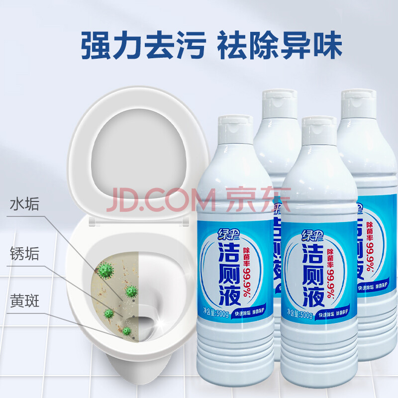 商品相册:绿伞洁厕液 马桶洁厕灵 强力除垢除菌99.9% 500g*4瓶第