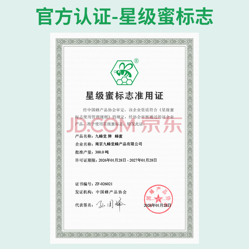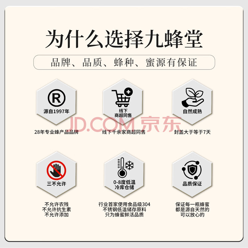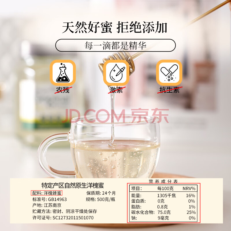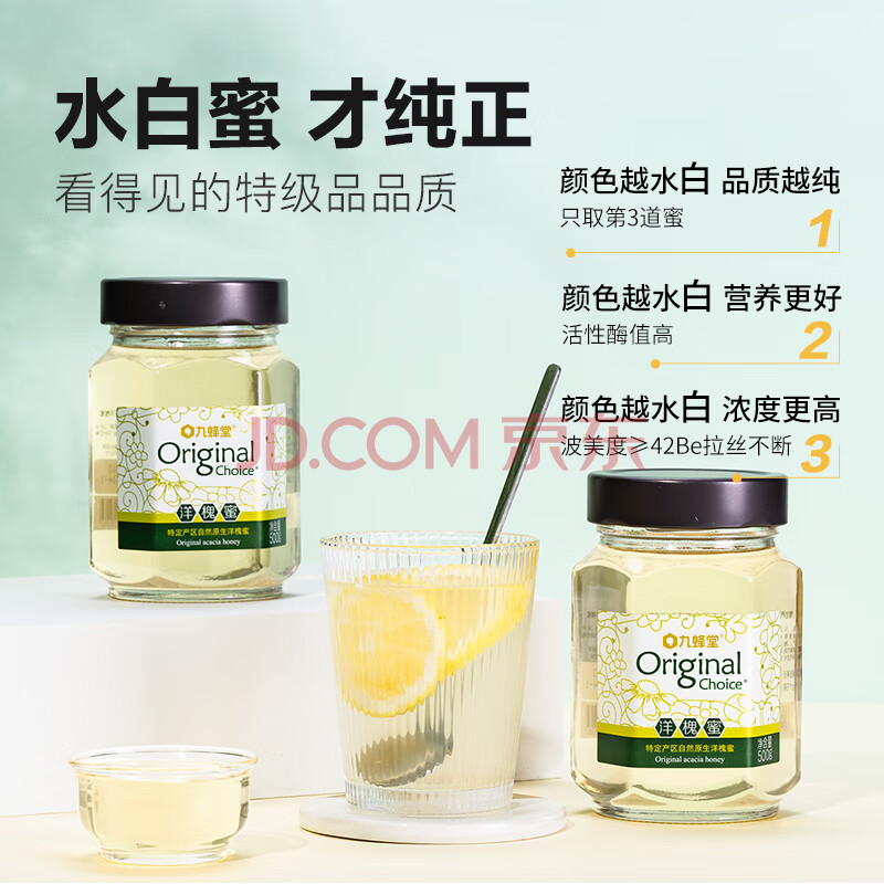 商品相册:九蜂堂蜂蜜水白洋槐蜜原生真酿500g可溯源孕妇儿童纯正天然成熟补气血第