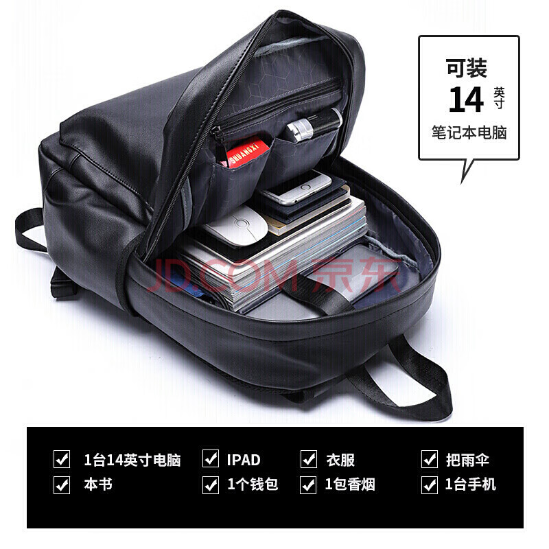 商品相册:高尔夫(GOLF)双肩包男士14英寸电脑背包男软皮旅行出差包防泼水休闲学生书包第