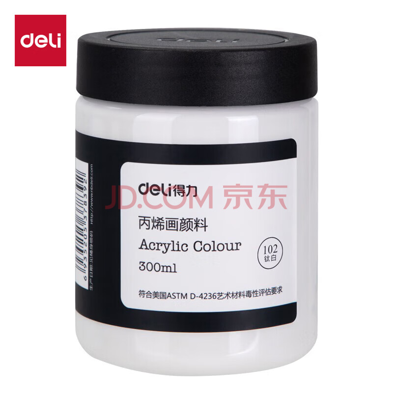 商品相册:得力(deli)丙烯颜料300ml大容量墙绘手绘DIY画画丙烯画大桶装大瓶美术绘画钛白美育工具第