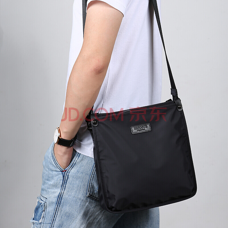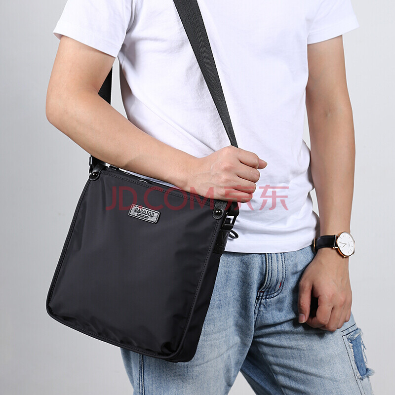 商品相册:派保爵PaboJoe男包单肩斜挎包头层牛皮配尼龙复合帆布背包休闲挎包男第