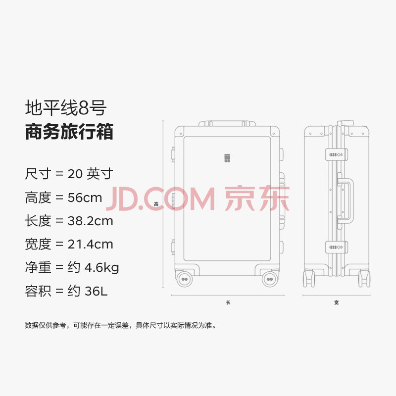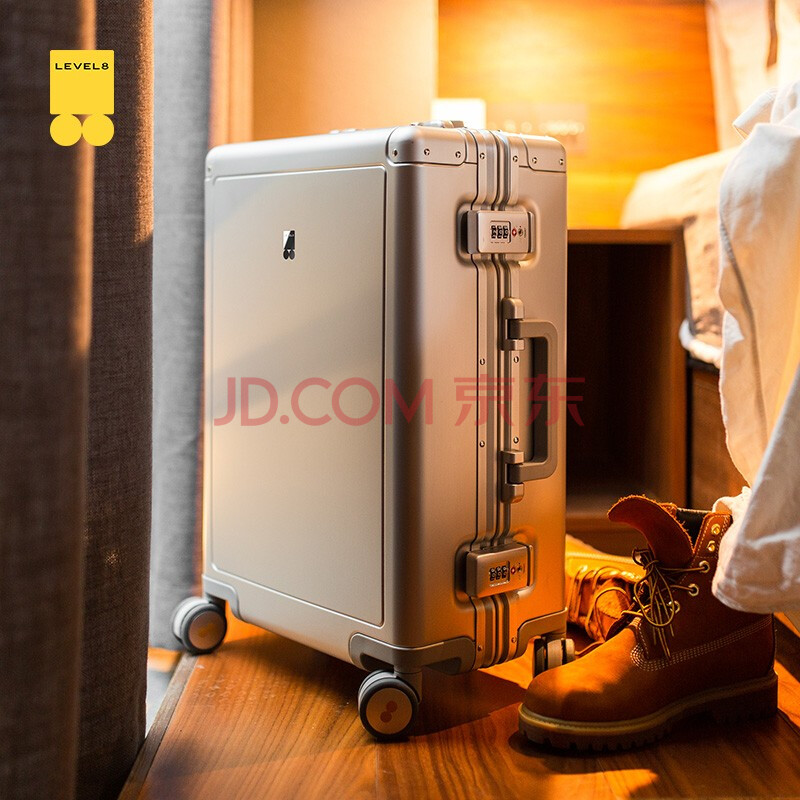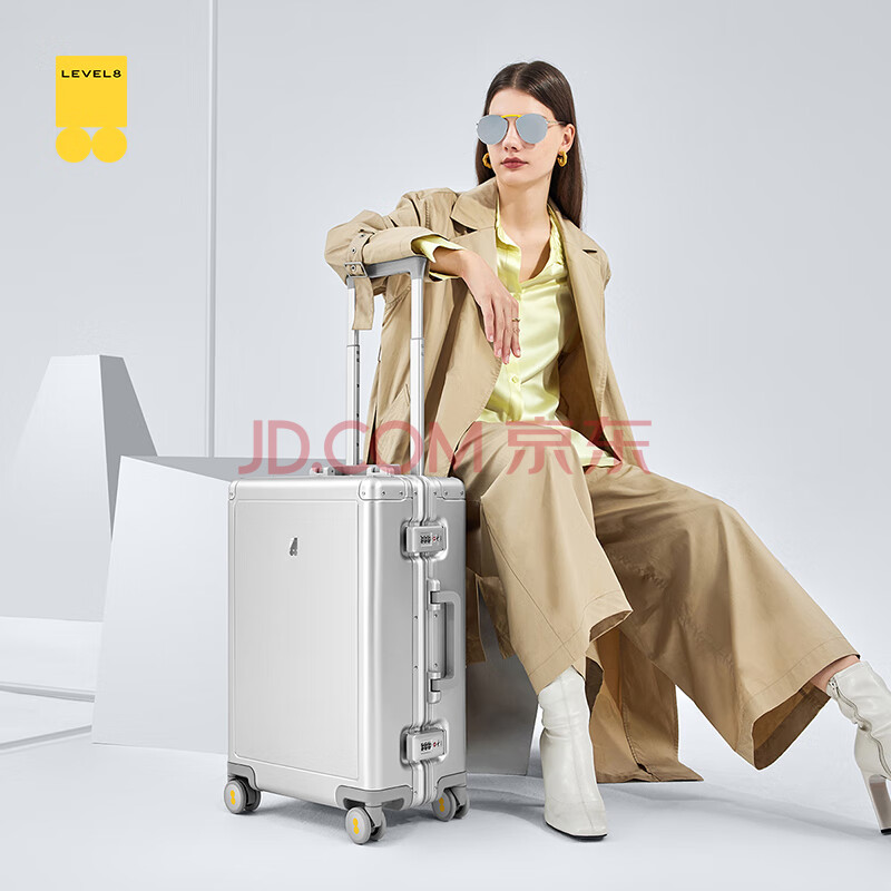 商品相册:地平线8号(LEVEL8)行李箱男 商务20英寸密码旅行箱铝镁合金登机飞行家拉杆箱女 银第