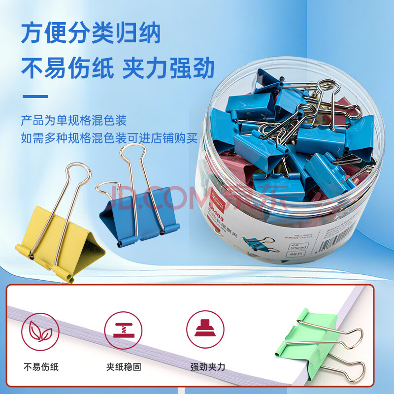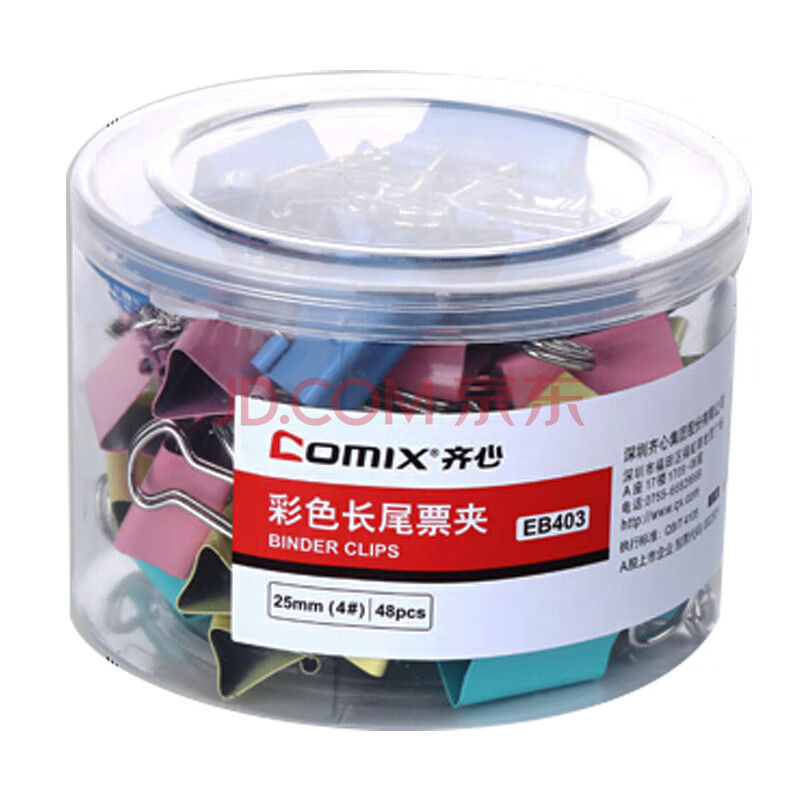 商品相册:齐心(COMIX)【超级爆款】48只25mm长尾夹票夹 4#中号燕尾夹 彩色金属票据文件夹子文具办公 48只/筒 EB403第