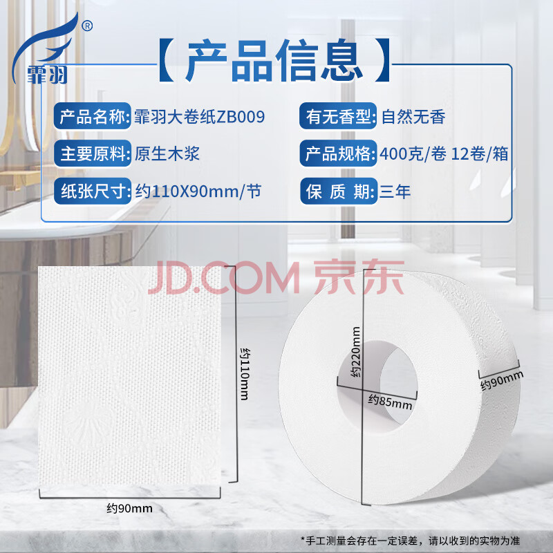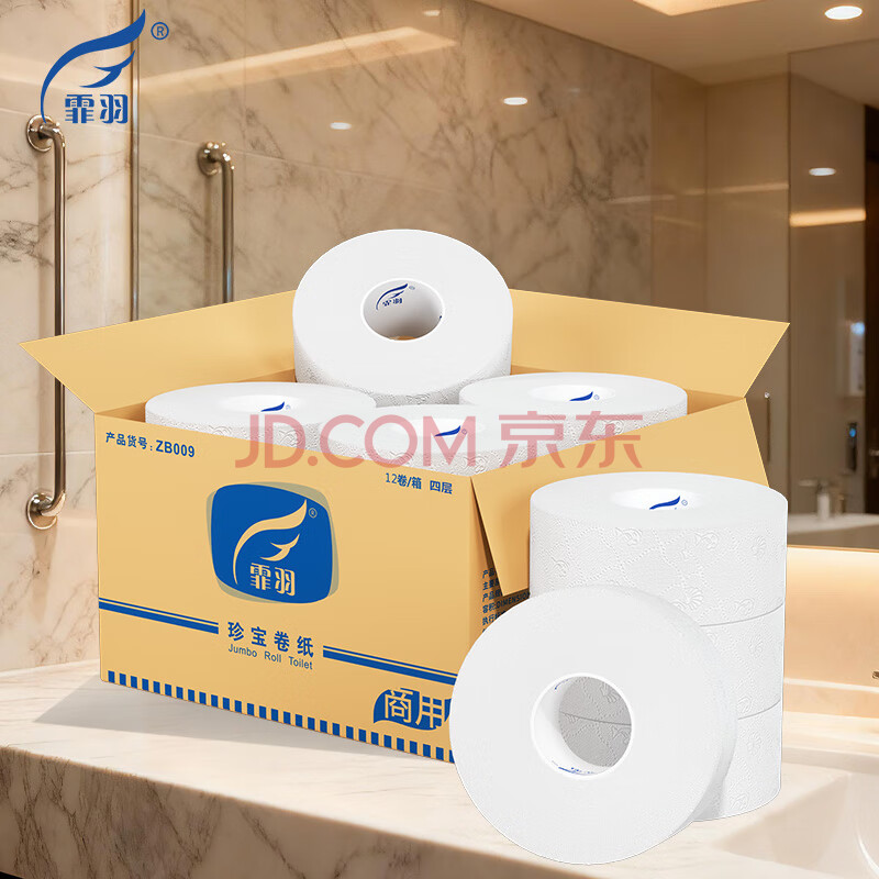 商品相册:霏羽有芯大卷纸4层400克*12卷商用大盘纸手纸厕纸商务压花整箱ZB009第