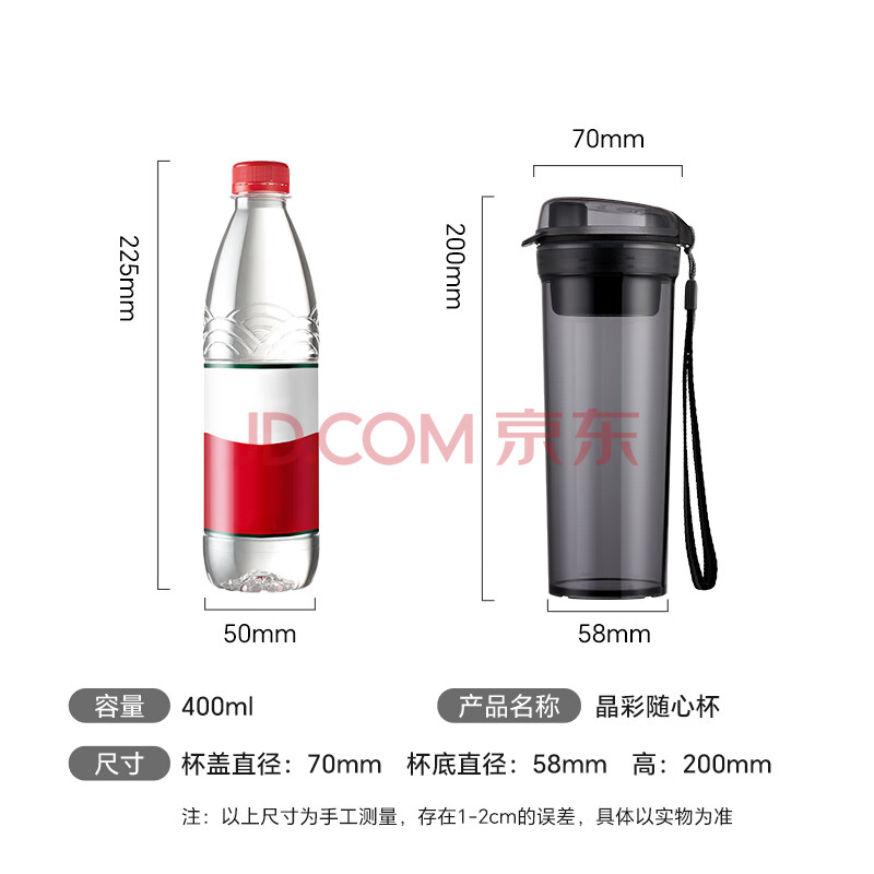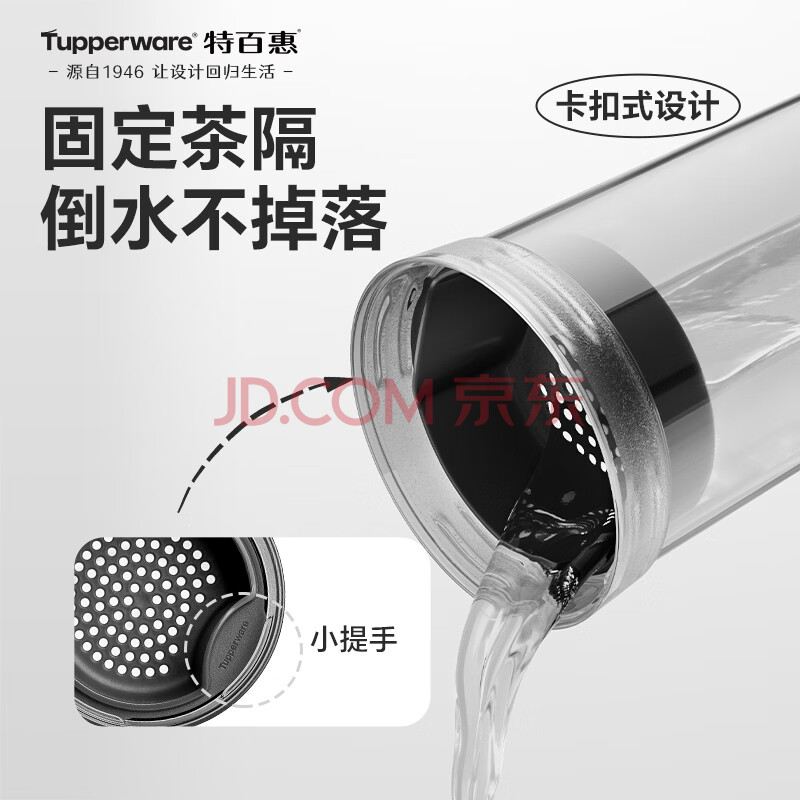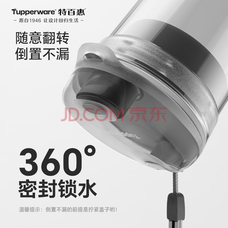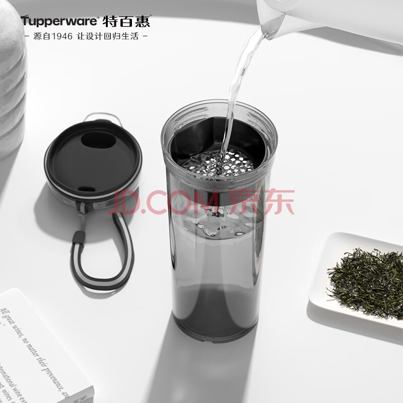 商品相册:特百惠(Tupperware)晶彩400ml塑料杯男女士学生运动水杯子大容量泡茶杯 酷炫黑第
