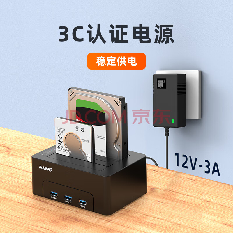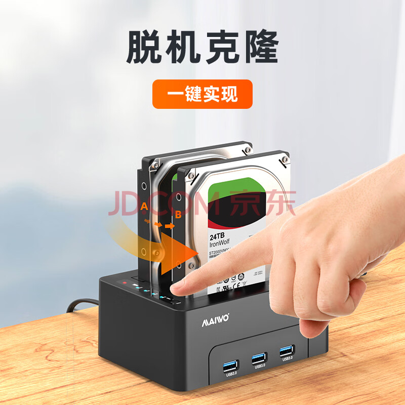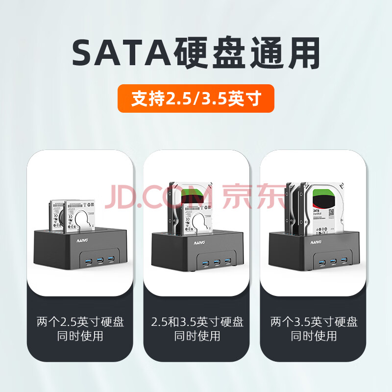 商品相册:麦沃(MAIWO) K3082H 硬盘底座USB3.0外置读取3.5/2.5英寸串口机械/固态双硬盘带USB分线扩展器拷贝机 黑色第