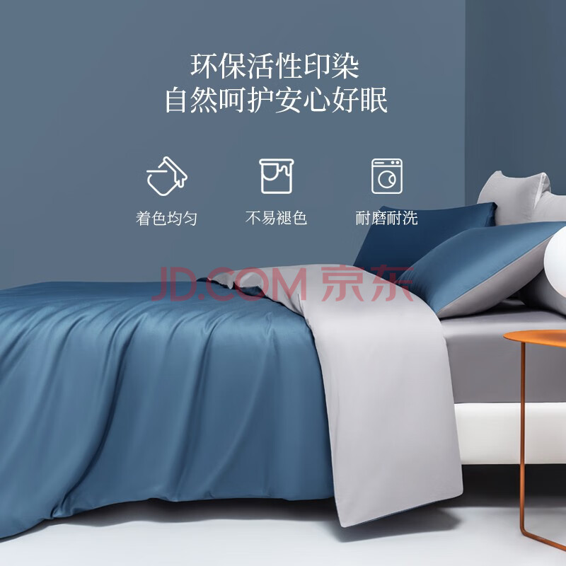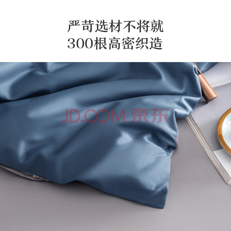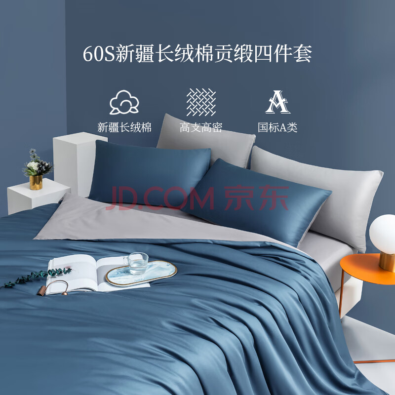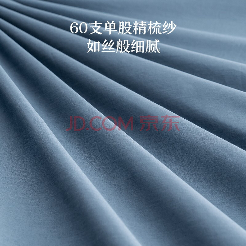 商品相册:京东京造 植素超柔贡缎 60支长绒棉A类纯棉床单床上四件套 1.5米床 灰蓝第