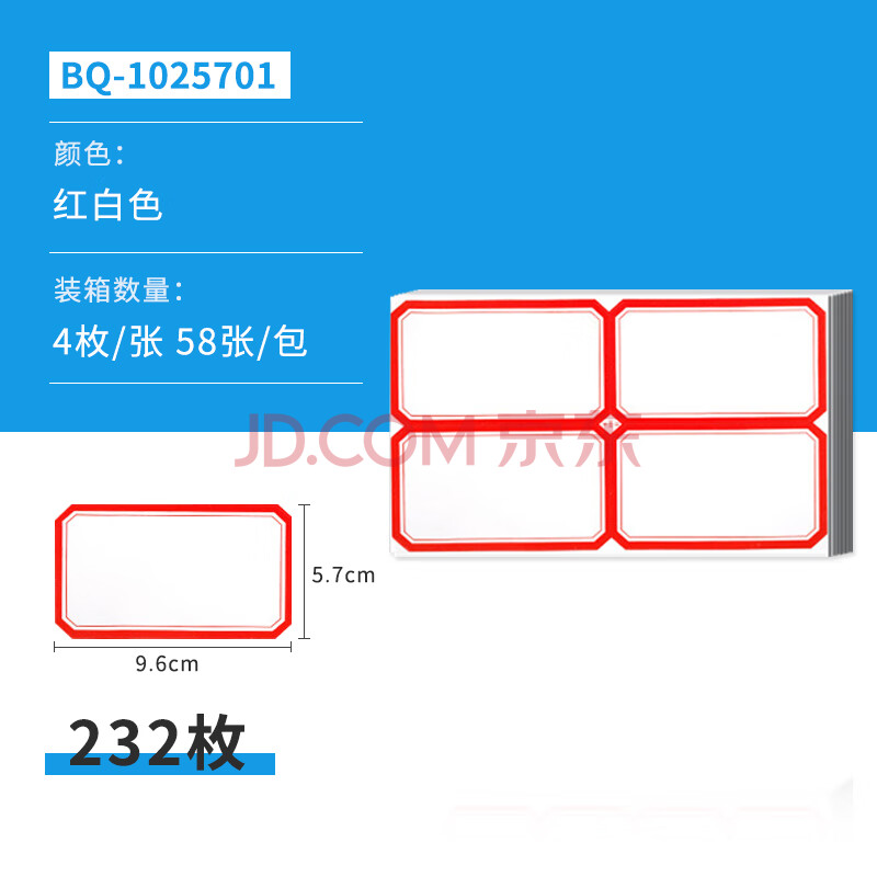 商品相册:NVV 标签贴纸 大号232枚96*57mm不干胶贴纸 自粘性口取纸姓名贴价格标签便利贴BQ-1025701红色第