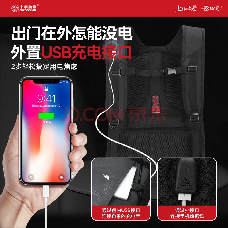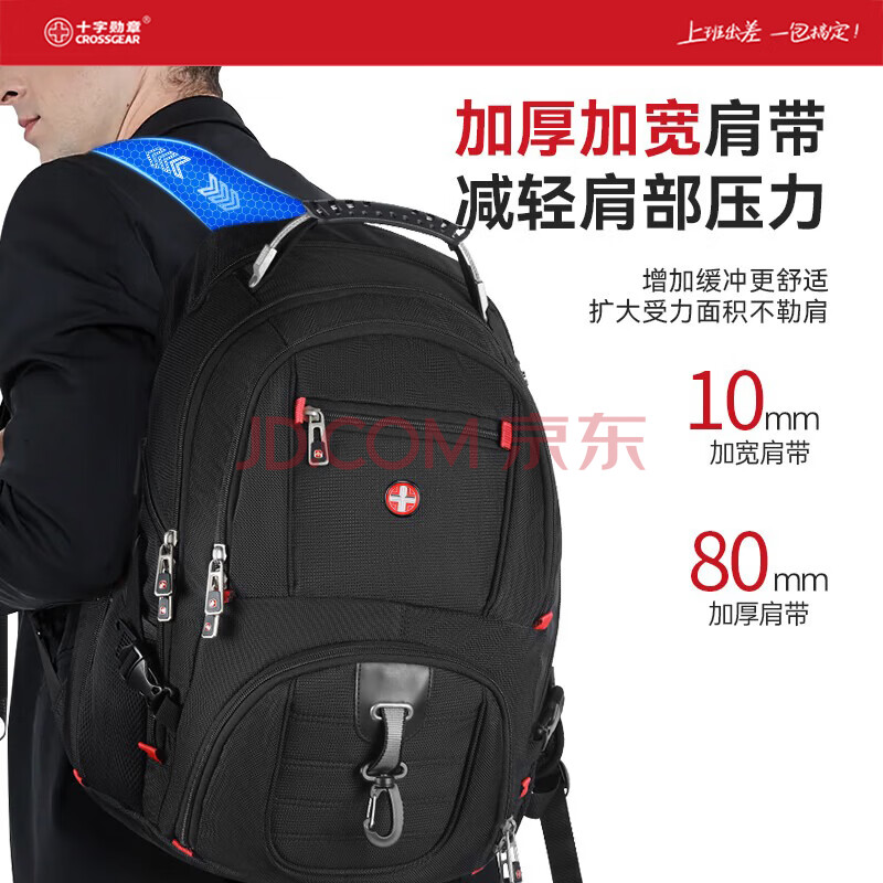 商品相册:CROSSGEAR瑞士军士刀双肩背包男17.3吋笔记本电脑包大容量出差旅行户外书包第