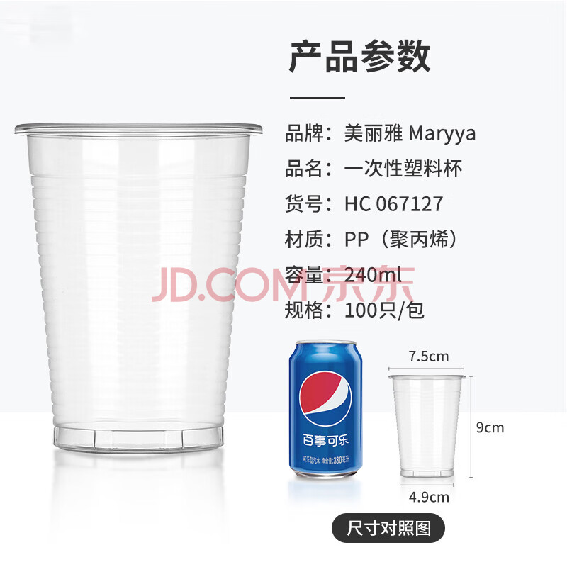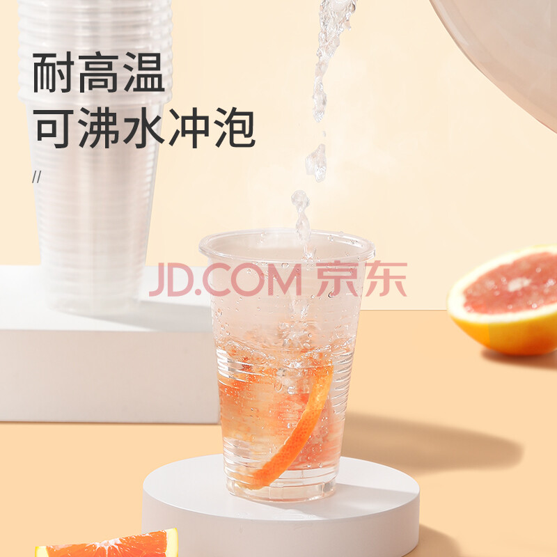 商品相册:美丽雅一次性杯子塑料杯240ml*100只加厚透明果汁饮料水杯小号商务家用第